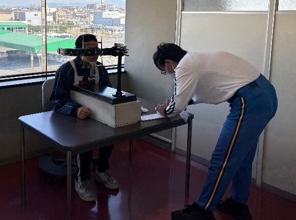 校内講習は、シミュレーター実習、反射時間の確認、視角の確認など自分の洞察力の確認を行いました。