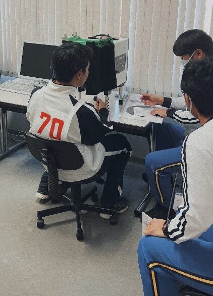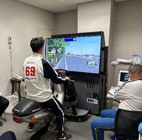 校内講習は、シミュレーター実習、反射時間の確認、視角の確認など自分の洞察力の確認を行いました。
